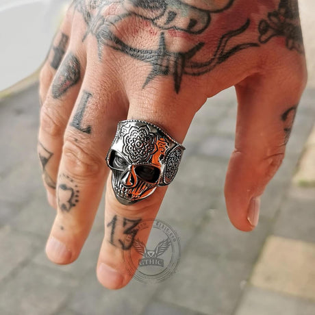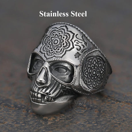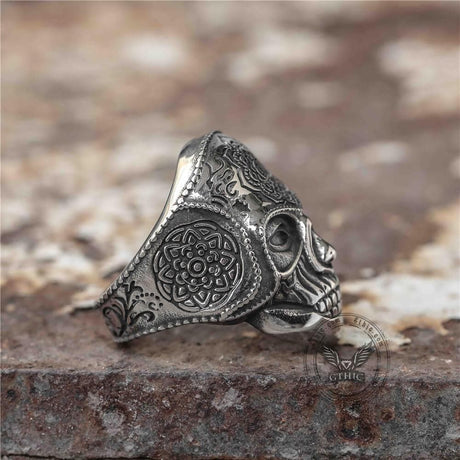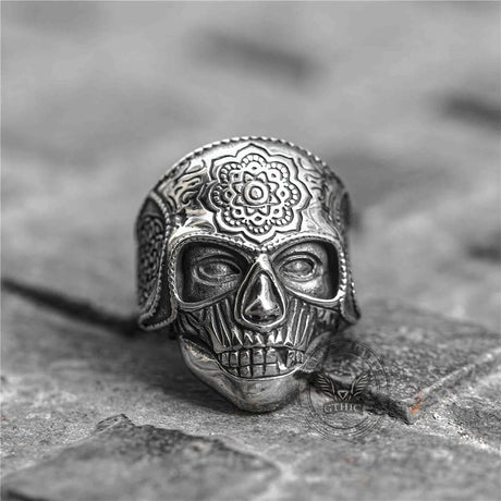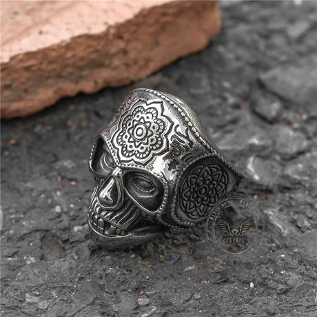 Mexican Flower Stainless Steel Sugar Skull Ring