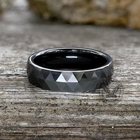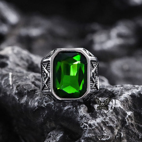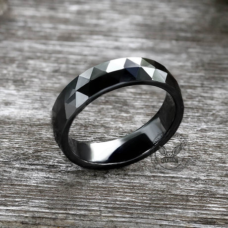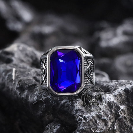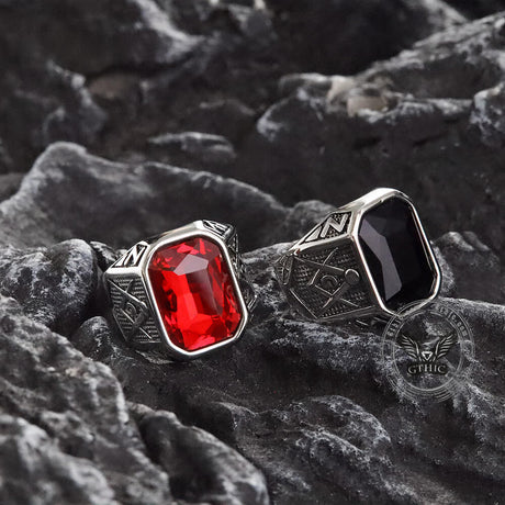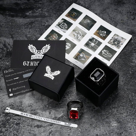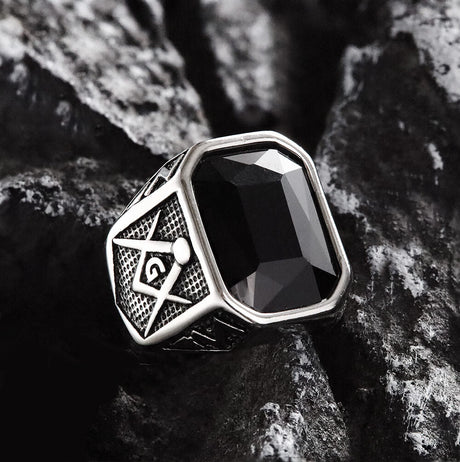 Lucifer Symbol Black Gem Stainless Steel Ring
