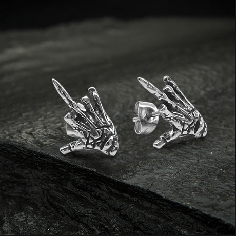 Middle Finger Ghost Hand Stainless Steel Ear Stud