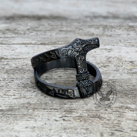 Norse Runes Thor’s Hammer Stainless Steel Ring