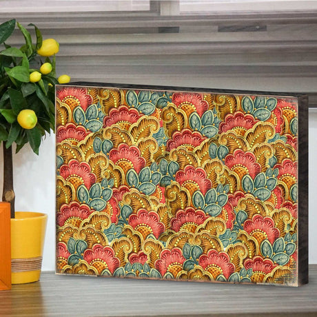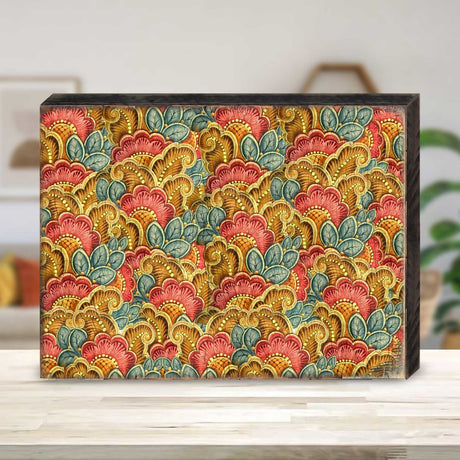 Bloque de pared rústico floral dorado, rojo y a...