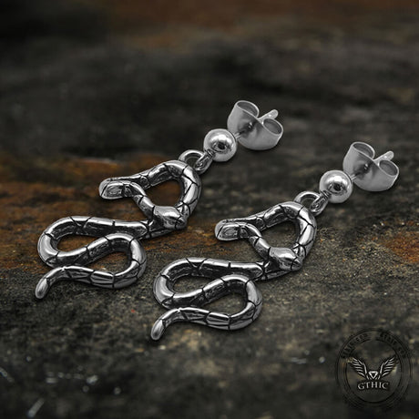 Crawling Snake Stainless Steel Animal Stud Earr...