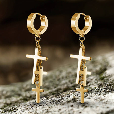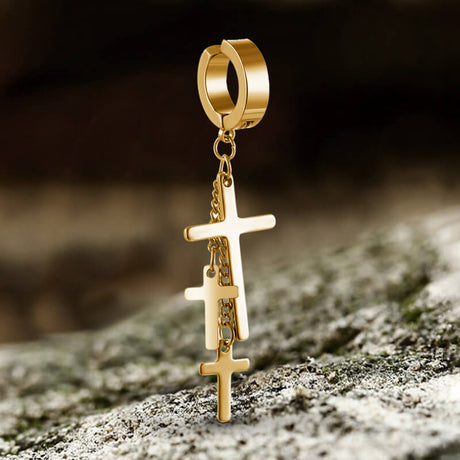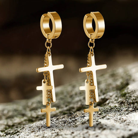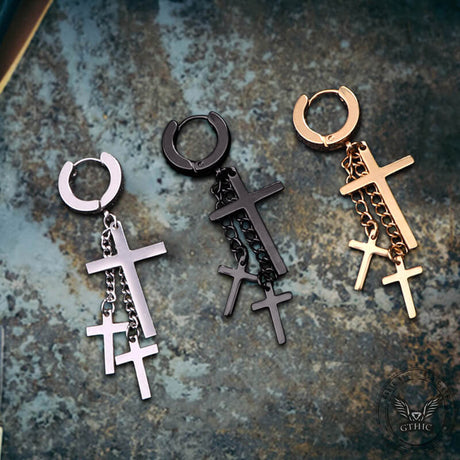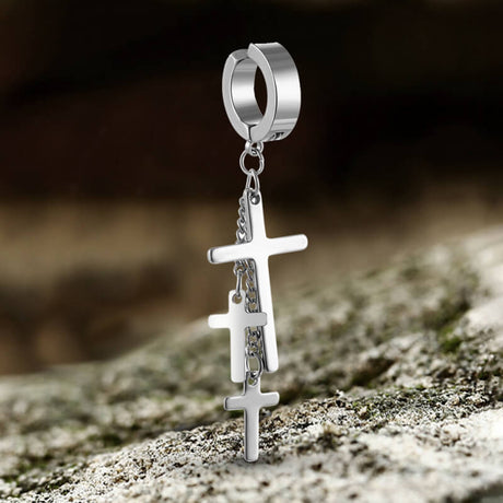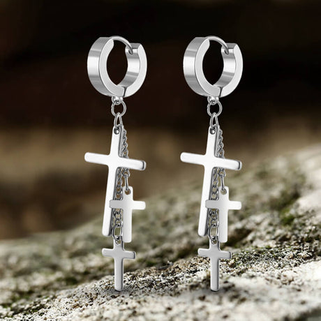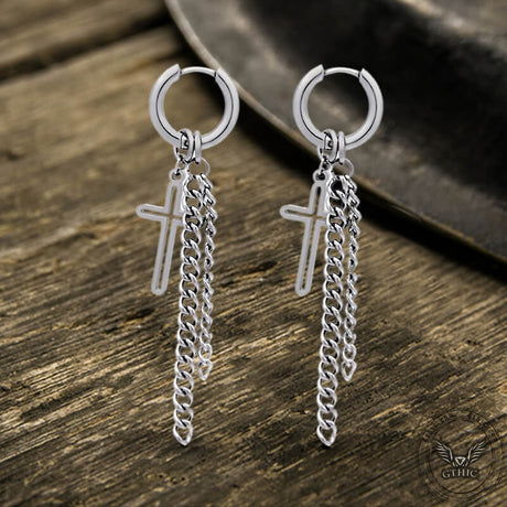Cross Chain Tassel Stainless Steel Hoop Earring