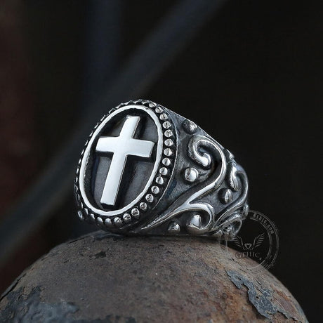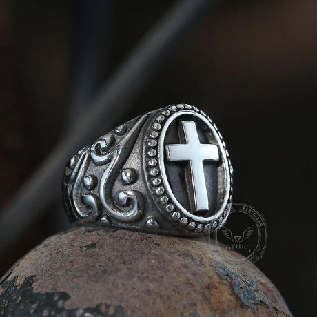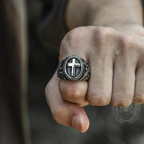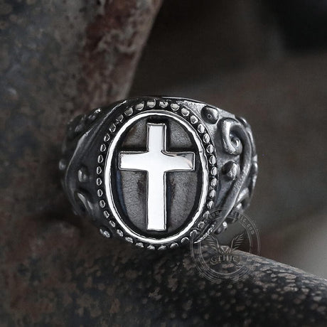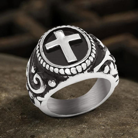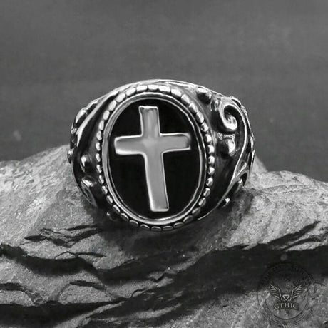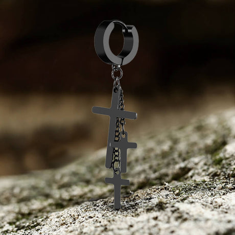 Cross Inlaid Black Stone Stainless Steel Earrings
