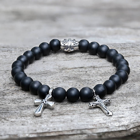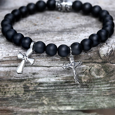 Cross Skull Stainless Steel Men's Bead Bracelet
