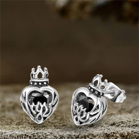 Crown Gem Stainless Steel Gothic Stud Earrings
