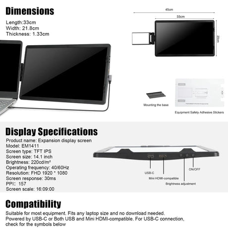 12 Inch Laptop Dual Monitor 1920*1080 HD IPS LC...