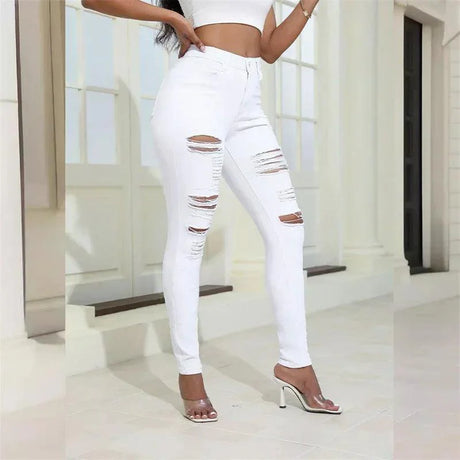 2024 Fashion Broken Holes Women Pencil Jeans Tr...