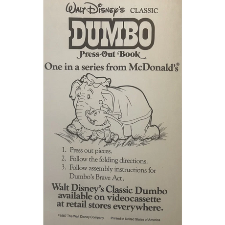Vintage Walt Disney Dumbo Press Book Antique Gi...