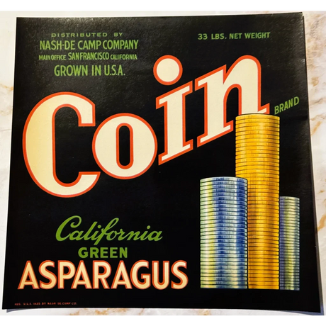 Vintage Nash-De Camp Coin Asparagus Crate Label...