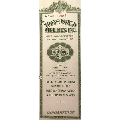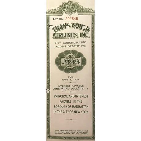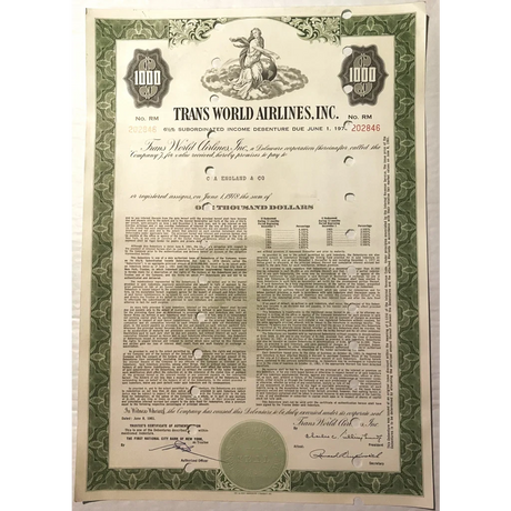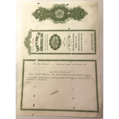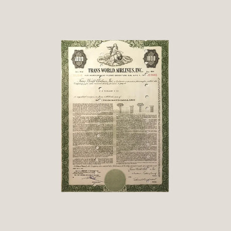 Rare 1961 Trans World Airlines Gold Bond Certif...