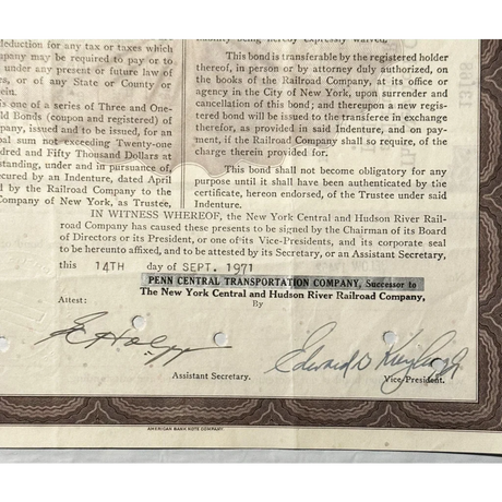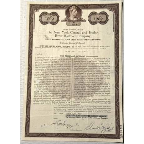 Rare 1970s Hudson River Railroad Gold Bond Cert...