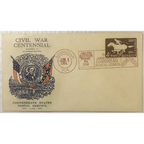 Rare 1961 Civil War Jefferson Davis Stamped Env...