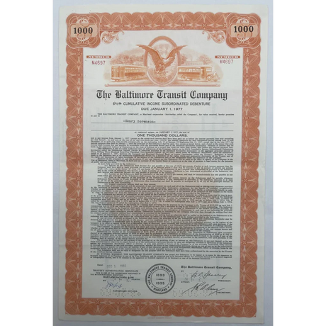 Rare 1966 Baltimore Transit Gold Bond Certifica...