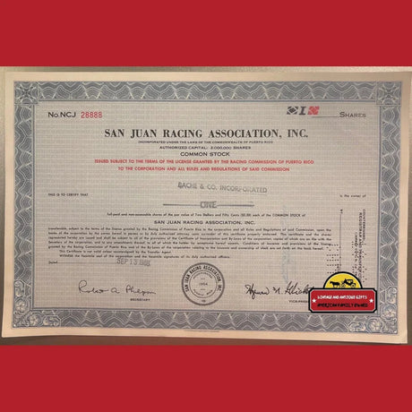 Rare 1960s San Juan Racing Stock Certificate Wa...