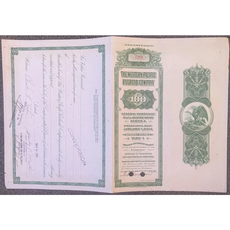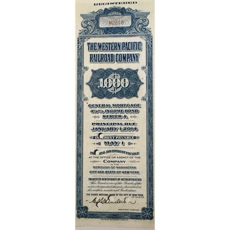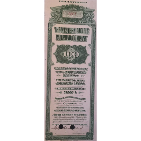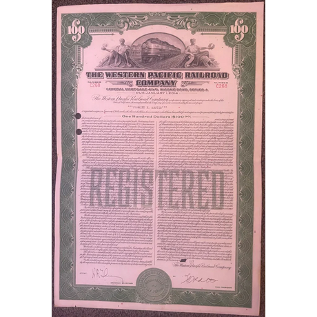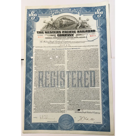 Rare 1945 Western Pacific Railroad Bond Certifi...
