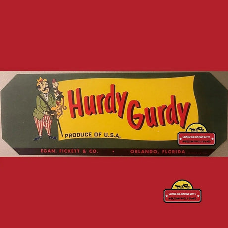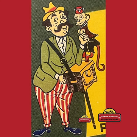 Rare 1940s Hurdy Gurdy Crate Label Monkey Art f...
