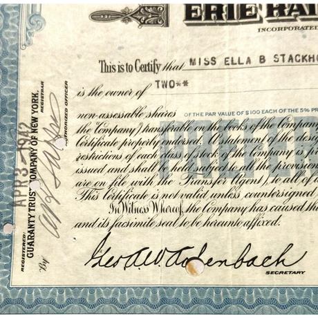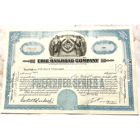 Rare 1940s Erie Railroad Stock Certificate Unea...