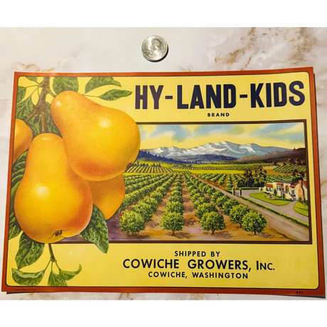 Rare 1940s Hy-Land-Kids Pears Label from Cowich...