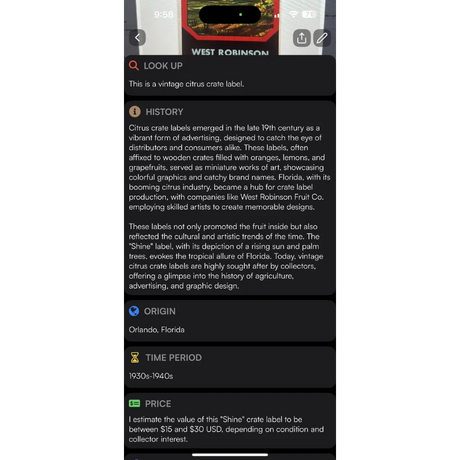 Rare 1940s Orlando Shine Crate Label Tropical V...