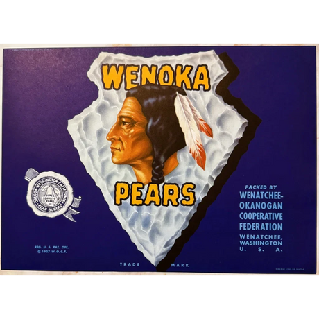 Rare 1940s Wenoka Pear Label Showcases Native A...