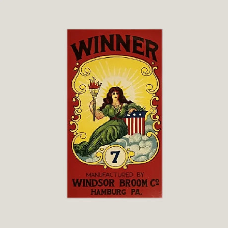 Rare 1940s Winner Broom Label Patriotic WW2 Ant...