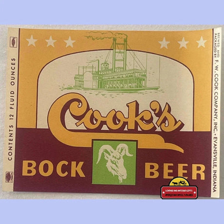 Rare 1940s Cook's Bock Beer Label with Steamboa...