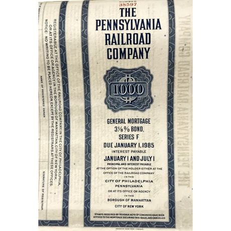 Rare 1945 Pennsylvania Railroad Pennsy Gold Bon...