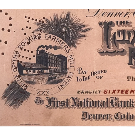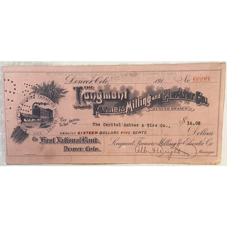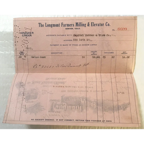 Rare 1921 Longmont Farmers Milling Voucher Chec...