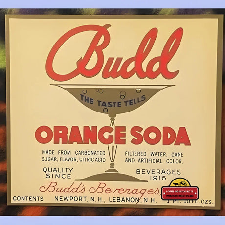 Rare 1920s Antique Vintage Budd Orange Soda Lab...