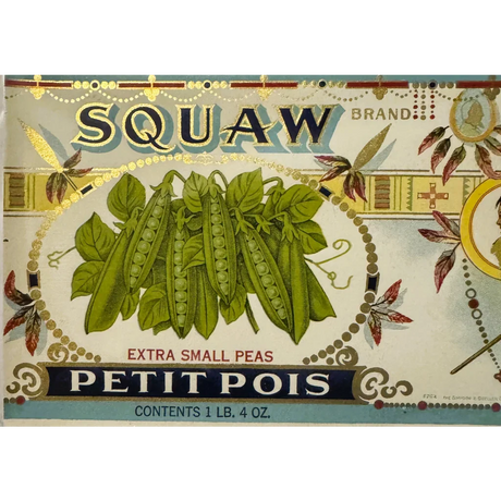 Rare 1920s Squaw Brand Peas Label Unearths Vint...