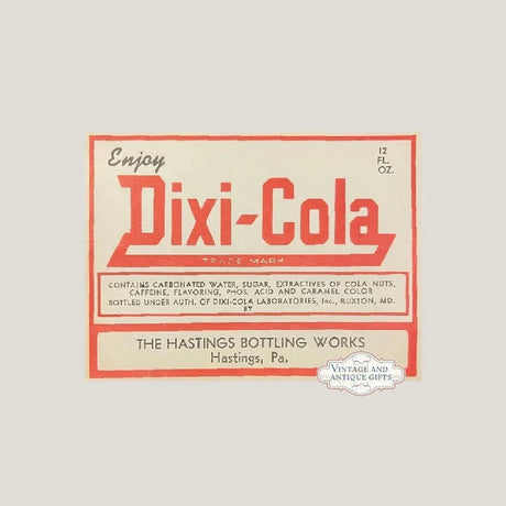 Rare 1930s Antique Vintage Dixi-Cola Label from...