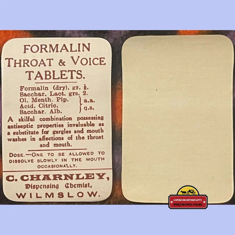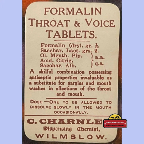 Rare 1910s Formaline Pharmacy Label Cures Throa...