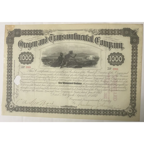 Rare 1882 Oregon Railroad Gold Bond Certificate...