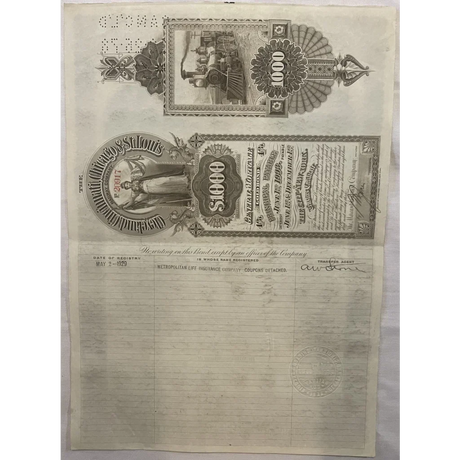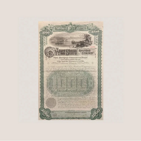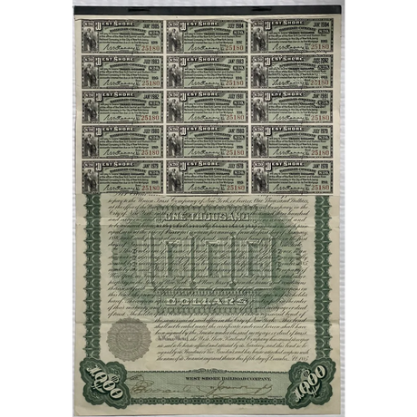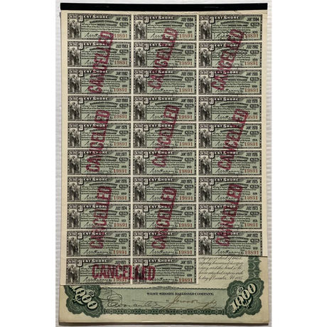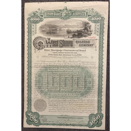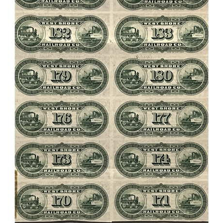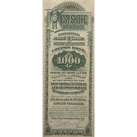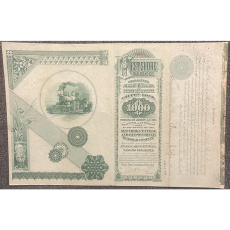 Rare 1885 West Shore Railroad Gold Bond Certifi...