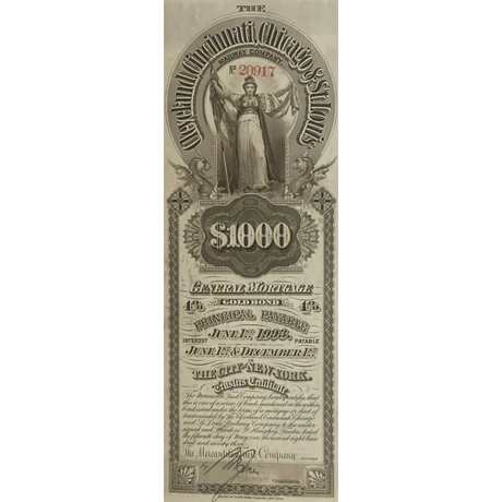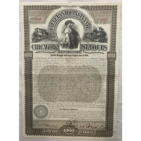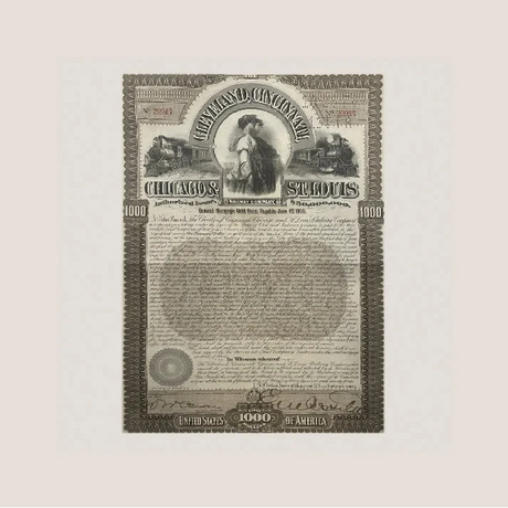 Rare 1893 Railroad Bond Certificate from Clevel...