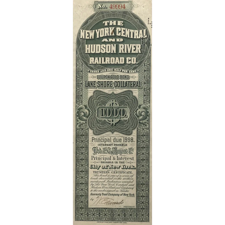 Rare 1898 New York Central Railroad Gold Bond C...