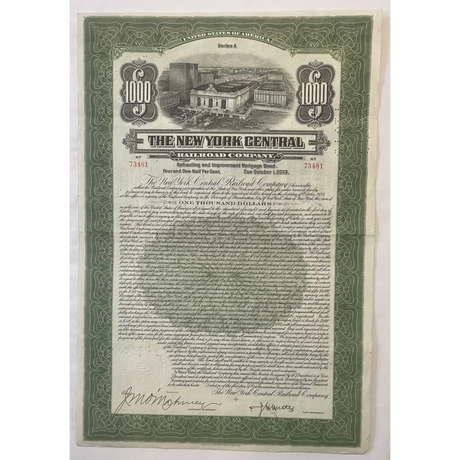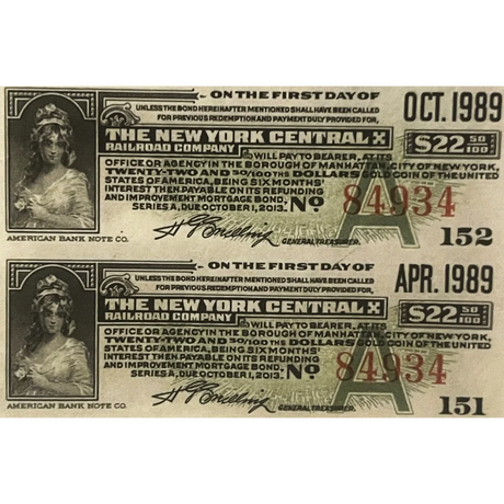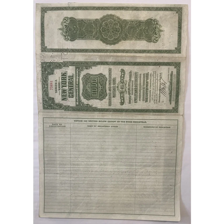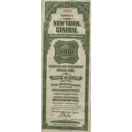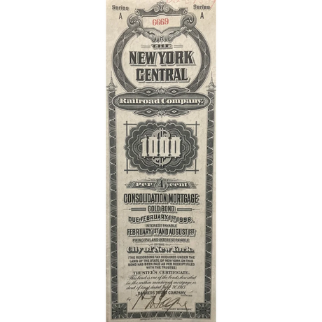 Rare 1913 New York Central Gold Bond Certificat...