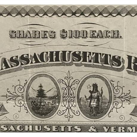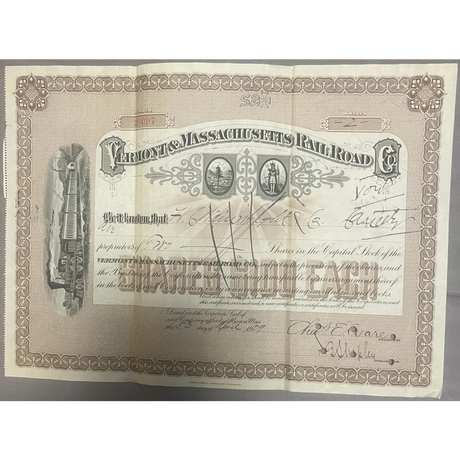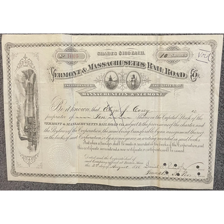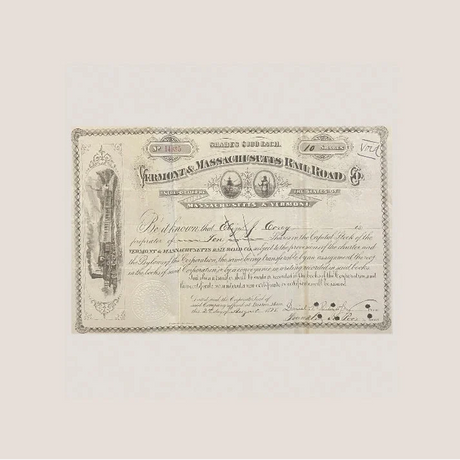 Rare 1900s VT & MA Railroad Stock Certificate T...