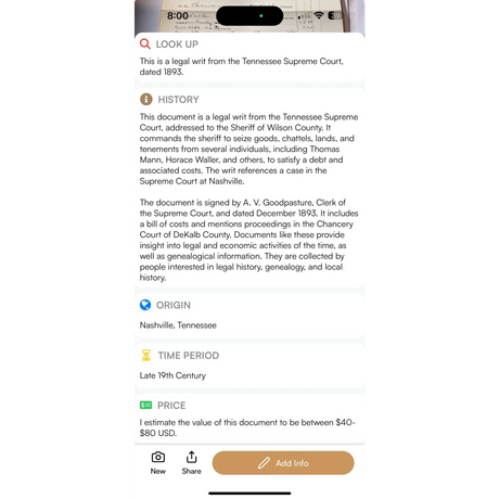 Rare 1893 Tennessee Supreme Court Legal Documen...