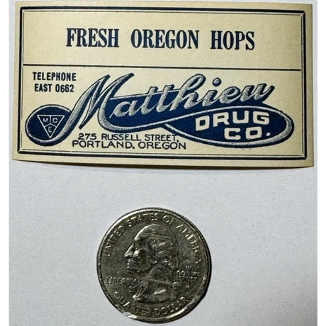 Rare 1910s Fresh Oregon Hops Drug Store Label f...