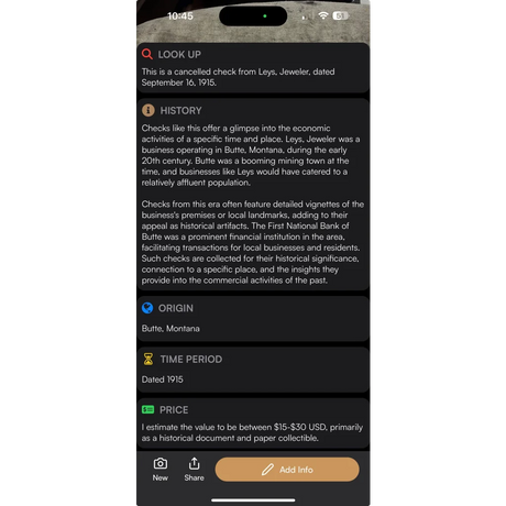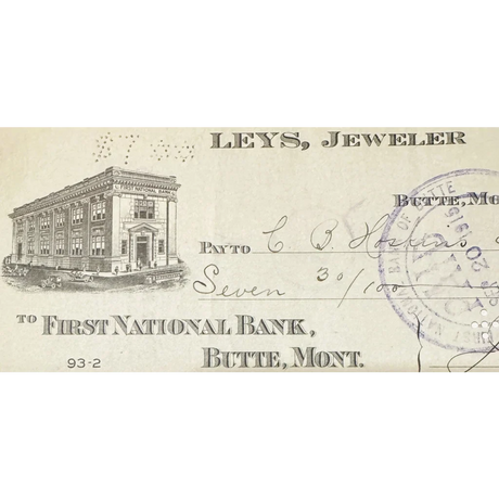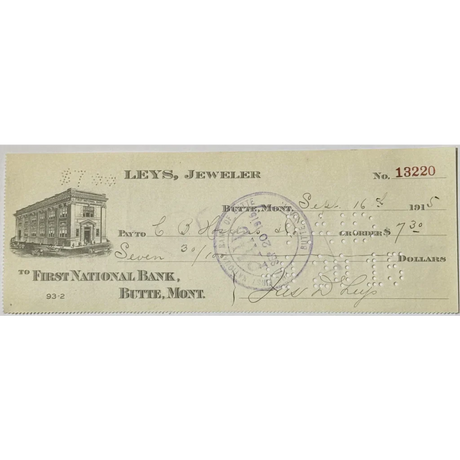 Rare 1910s Leys Jeweler Check from Historic But...