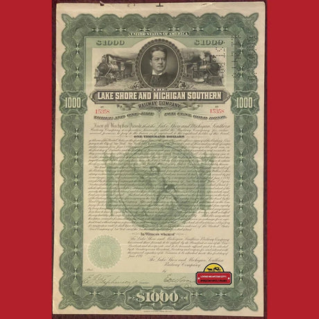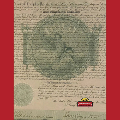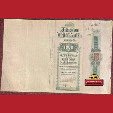 Rare 1897 Lake Shore Gold Bond Certificate Brin...