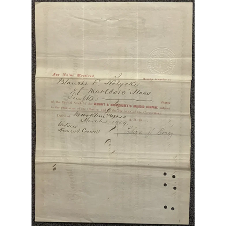 Rare 1800s Vermont and Massachusetts Railroad S...