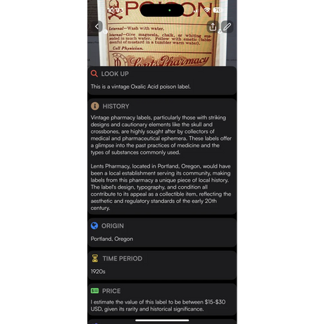 Discover Rare Vintage 1920s Oxalic Acid Label f...