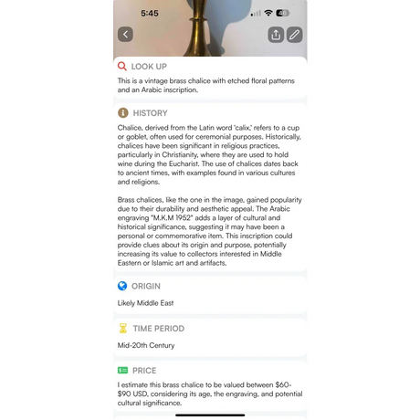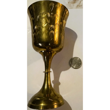 Exquisite Middle Eastern Brass Chalice with Flo...