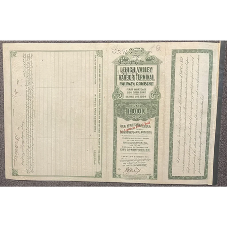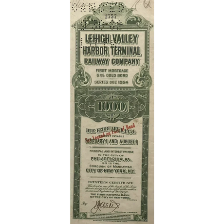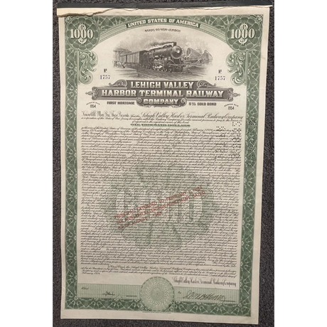 Rare Lehigh Valley Railway Gold Bond Certificat...