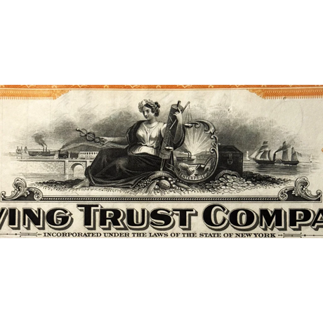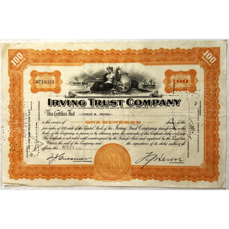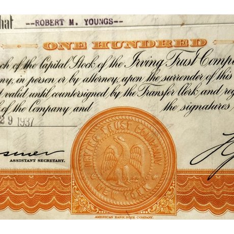 Rare Orange 1930s Irving Trust Company Stock Ce...