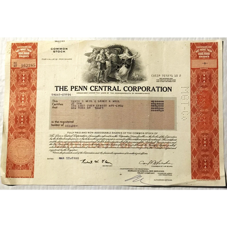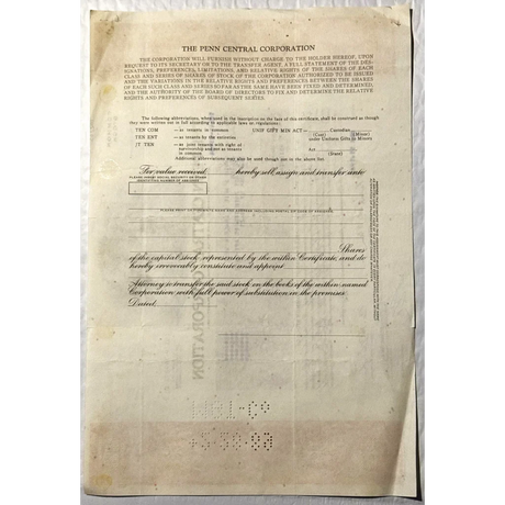 Rare Pennsylvania Railroad Stock Certificate fr...