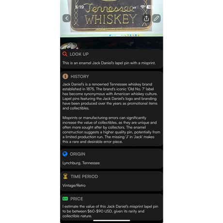 Rare Misprint Jack Daniel's Vintage Enamel Pin ...